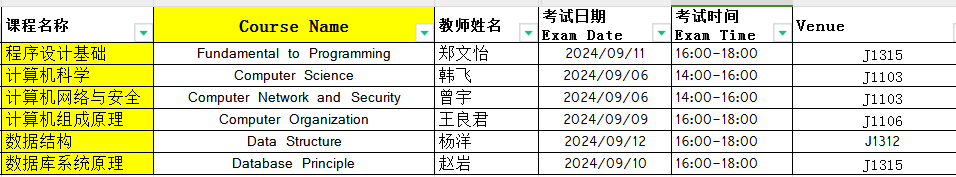 The make-up exams for the last semester (2023-2024-2) will be conducted offline from September 5th to September 14th. Please check the attachment file to find the date, time and venue.